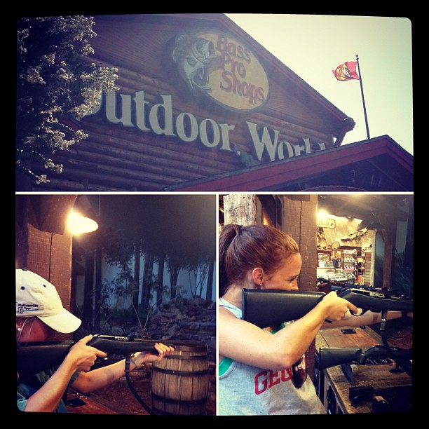 This week our daughter Alli leaves for her freshman year of college and while we have been preparing emotionally to moving one step closer to an empty nest, Alli has had quite the summer. Besides the usual having out with friends and going to movies, Alli has taken an interest in all things outdoors. Her older brother took her shooting, she and a group of friends went “enoing” & frog hunting, and recently she and a few friends went to the mecca for outdoor enthusiasts, Bass Pro Shops. While they were there Alli tweeted the following with the photo below: “This is what we did while the boys shopped #backwards”